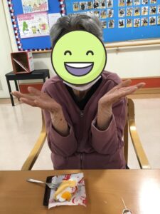 ↑まずはおやつレク![]()