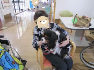 ドッグセラピー 2025.10.30 かわいいワンちゃんがくろいしにやってきてくれました🐶 キャバリアのハルちゃん 1歳半の女の子です🌷 とっても大人しくて人が大好き なでなでしてもらうのも大好き💕 みんなハルちゃんにメロメロ😍😍😍 利用者さんのお顔をスタンプ無しで見てもらいたいくらい、皆様とっても優しい笑顔💖 ハルちゃんに癒された一日でした🎈 また来てくれるのをおまちしてます❗❗