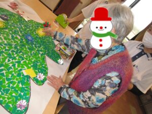 大きな貼り絵のモミの木に飾りをつけて頂きました🎄🌟