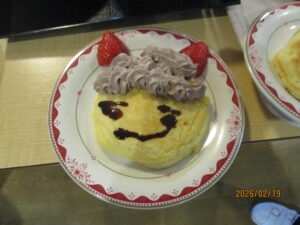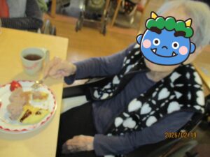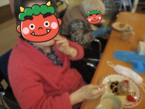 2026.02.23今回のおやつレクは…少し時期がずれましたが、節分にちなんで鬼さんホットケーキです🍴