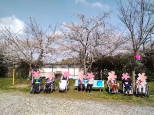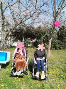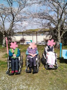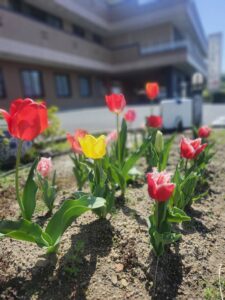 お花見2026 2026.04.20 今年のお花見は、比較的暖かい日が多く気持ちの良い外出レクとなりました😍 外の風を感じながらキレイな桜を見ていただきました🌸 くろいしの入り口に今年もチューリップを植えました🌱 可愛く咲いてくれました🌷🌹