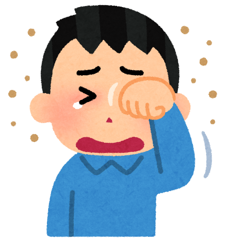 鼻の症状は「くしゃみ」「鼻水」「鼻詰まり」、目の症状「目のかゆみ」「充血」「涙」が主な症状です。